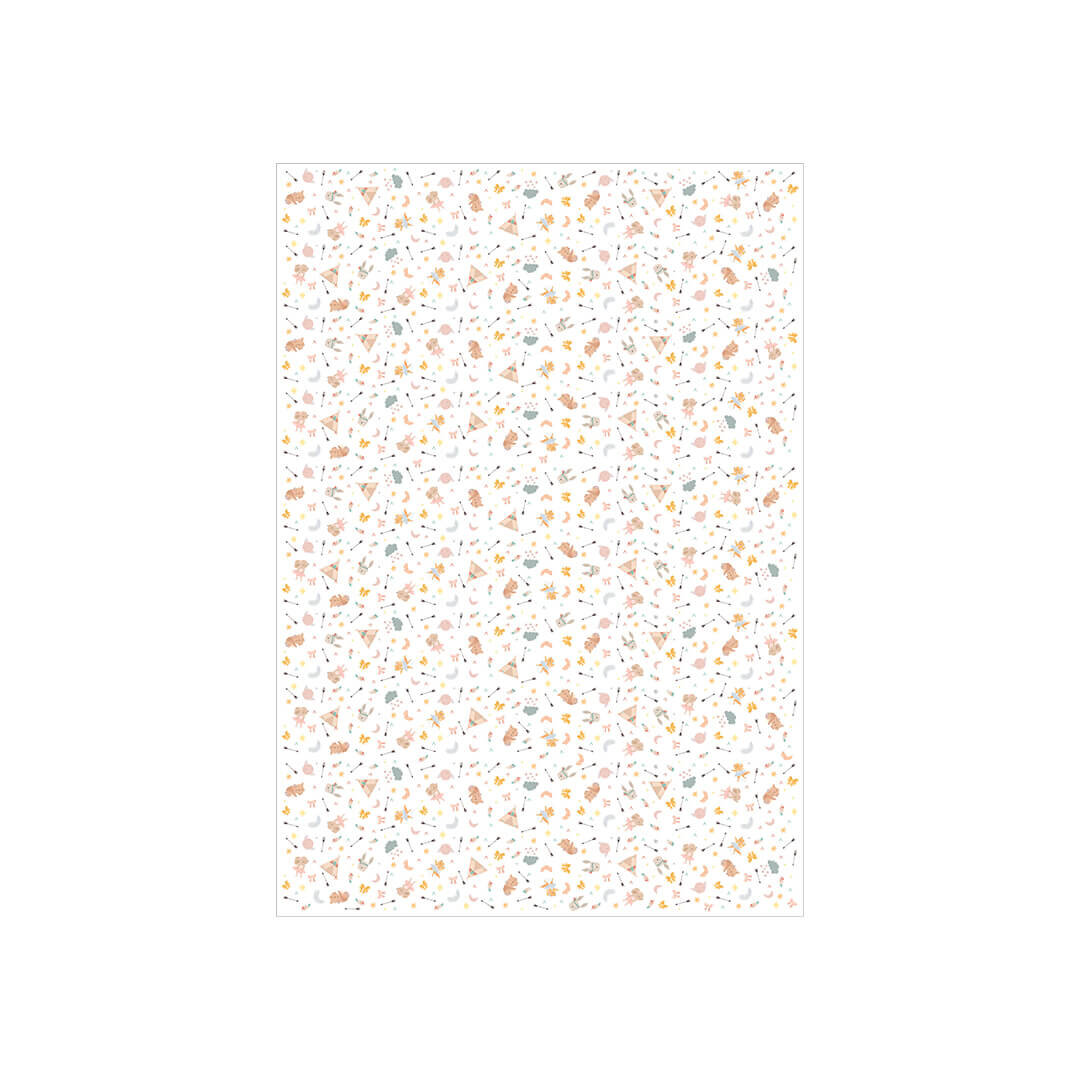 Gelince Haber VerMüşterilerinizi sıcak bir orman masalına davet edin. Boho Orman Hayvanları Desenli Pelur Kağıt; uykucu ayıcıklar, sevimli tavşanlar, kızılderili çadırları (teepee), oklar ve tüylerle bezeli, son yılların en popüler "Woodland Nursery" trendini yansıtır. Pastel şeftali ve toprak tonlarının hakim olduğu bu tasarım, özellikle organik pamuklu ürünler ve bebek hediyeleri için "yumuşacık" bir sunum vadeder. 35x50 cm boyutuyla minik kıyafetleri sarmak için idealdir.