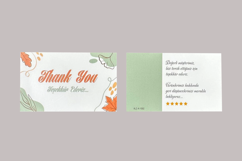 These greeting cards are designed to convey your message to your loved ones with a stylish and high-quality touch. The durability offered by 350-gram coated cardboard, combined with CMYK printing, creates eye-catching cards in vibrant colors. The cellophane coating protects the cards against external factors and ensures long-lasting use. These 84x52mm cards are ideal for all kinds of special days and celebrations.